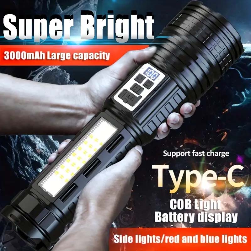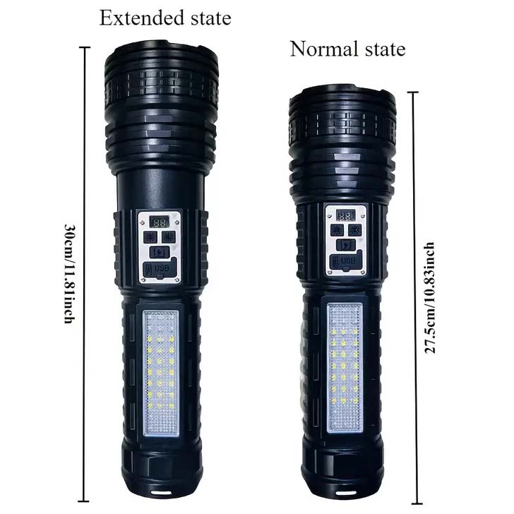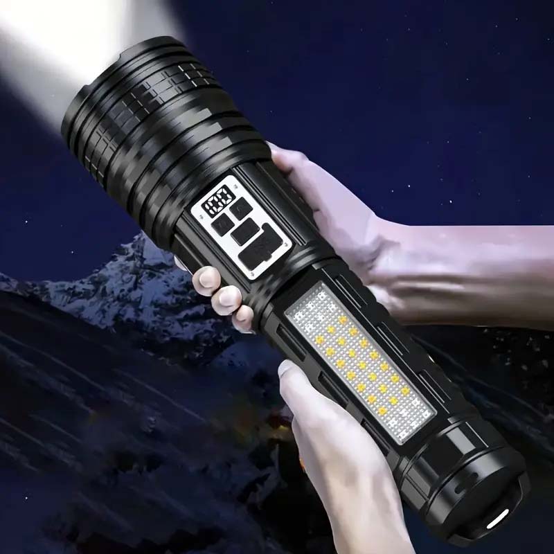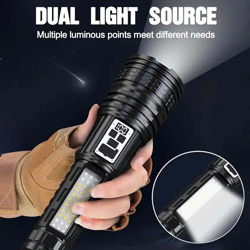 Flashlight Side COB Floodlight XHP50 LCD Digital Display Zoomable Outdoor Torch Emergency Flash Light