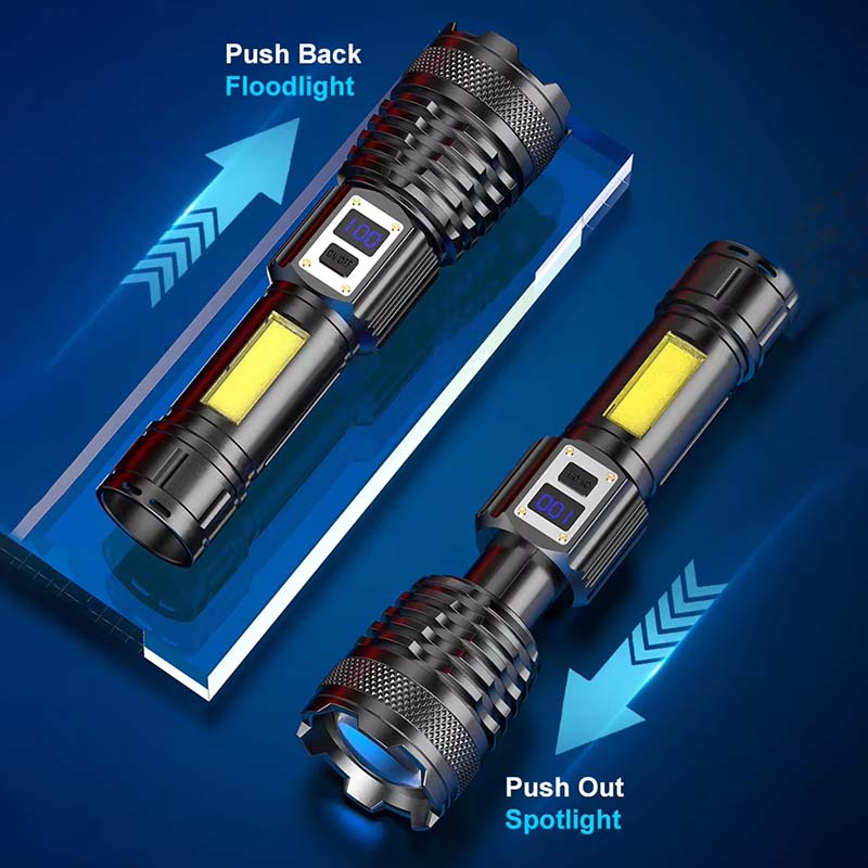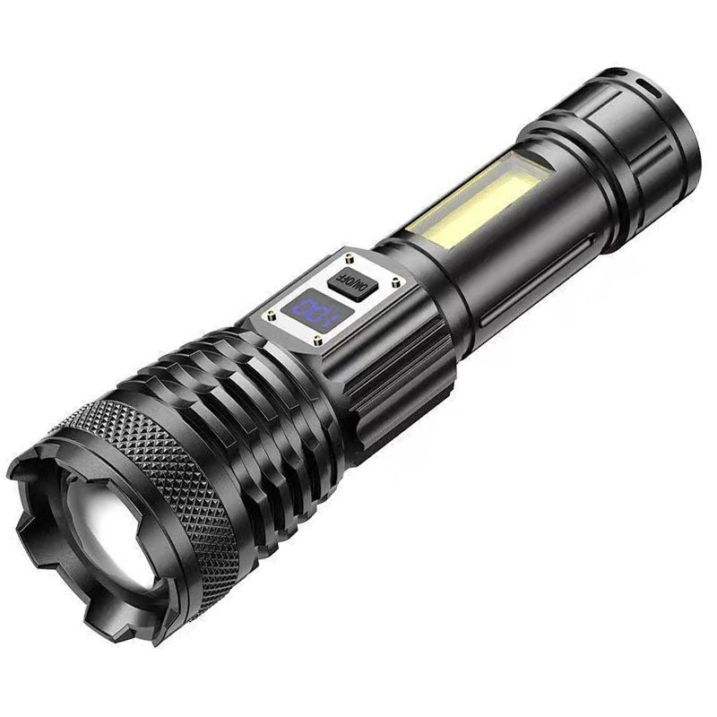 Flashlight Side COB Floodlight XHP50 LCD Digital Display Zoomable Outdoor Torch Emergency Flash Light