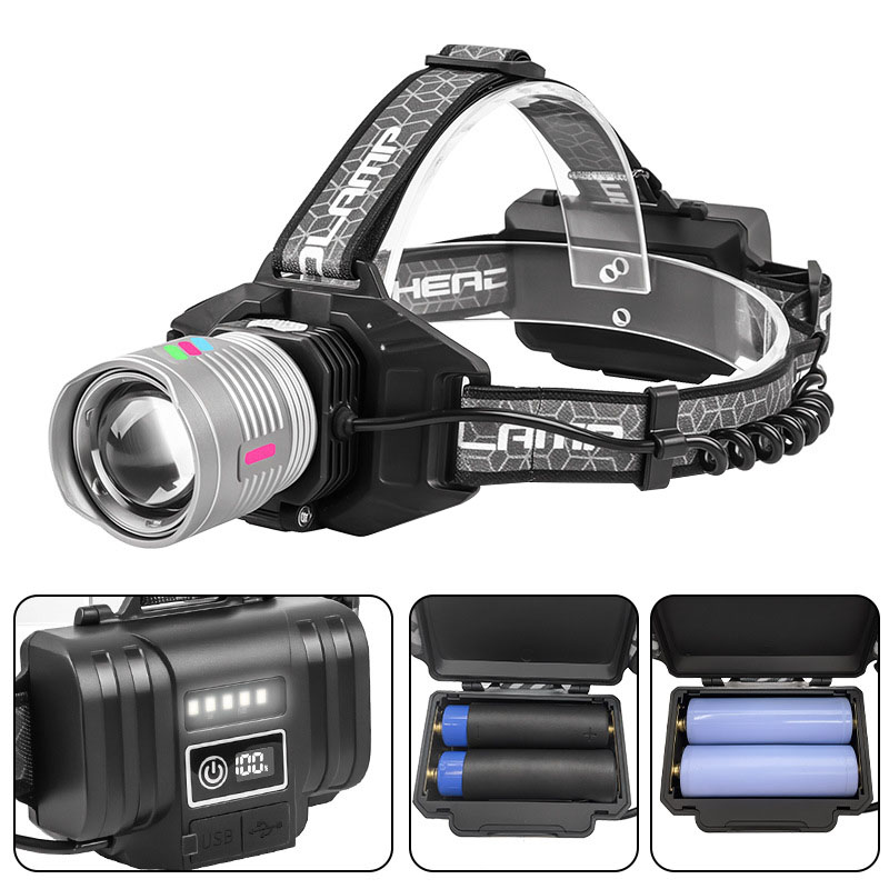 Outdoor Camping Emergency Power Display Usb Rechargeable Abs Plastic Body Camping LED Torch Working Lights Headlamp