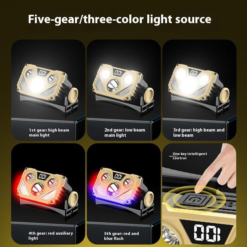 Multi-Functional Ultra-Bright High-Intensity Motion-Sensing Headlamp Detachable Ear-Hook Design for Outdoor Activities Night
