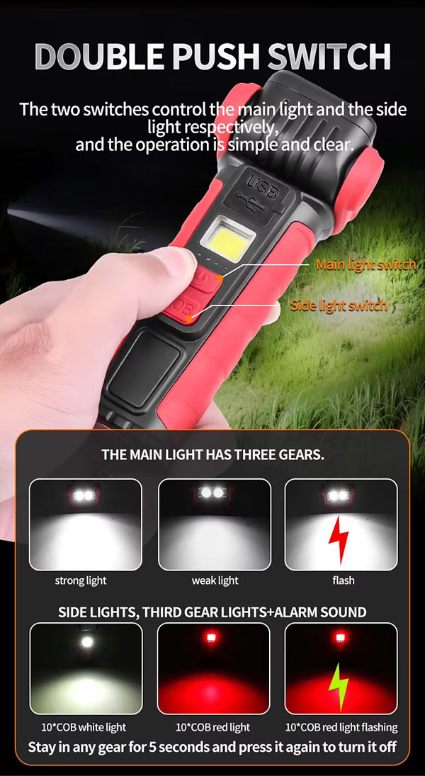 High Brightness 360° Dimmable COB LED Portable Hanging Flashlight for Garage Repair Workshop Fishing