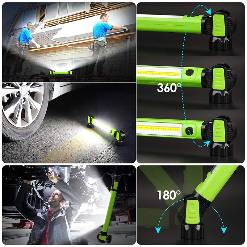 USB Rechargeable Portable LED Torch Degree Rotating COB Magnet Folding Emergency Car Repair Floodlight Work Light Lamp