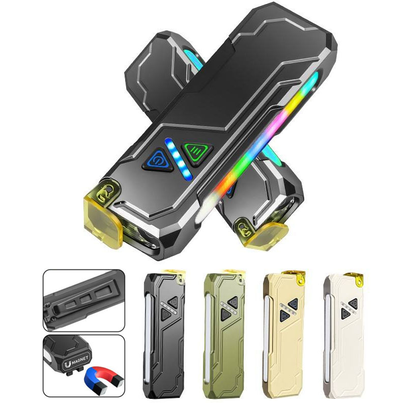 Aluminum LED Purple RGB Flashlight USB Rechargeable Multi-Color LED Torch Lamp with Clip for Outdoor and Work Use
