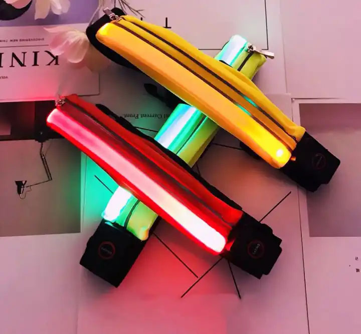 Mountaineering Safety 6 Inches Phone Pocket Anti-slip Recharge Led Waist Bag Portable Fanny Pack with Reflective Stripe