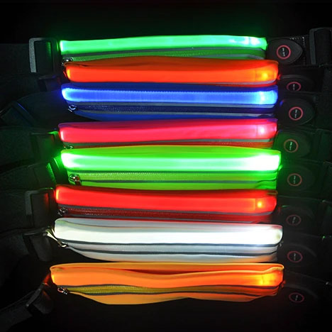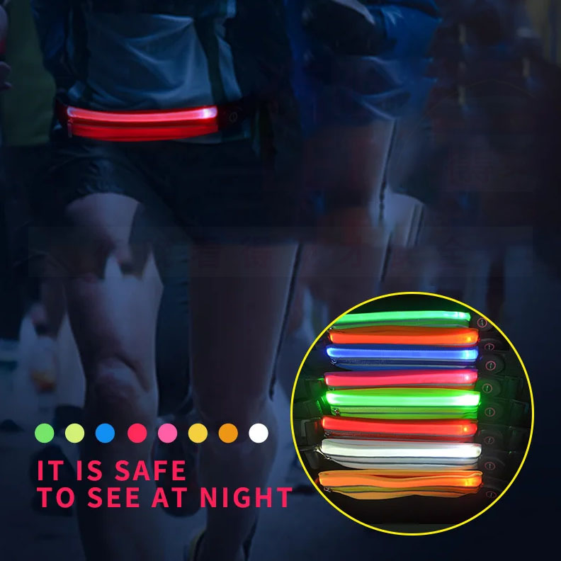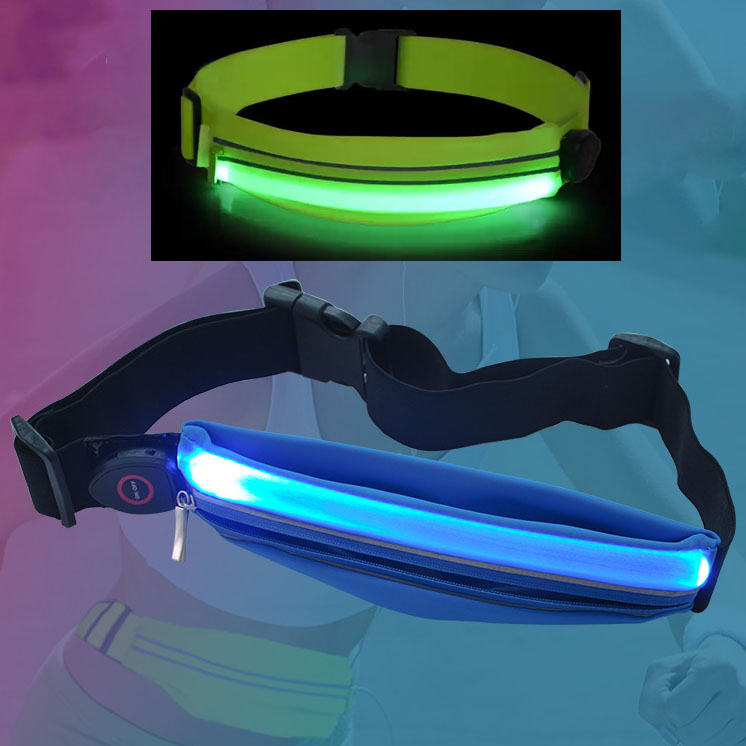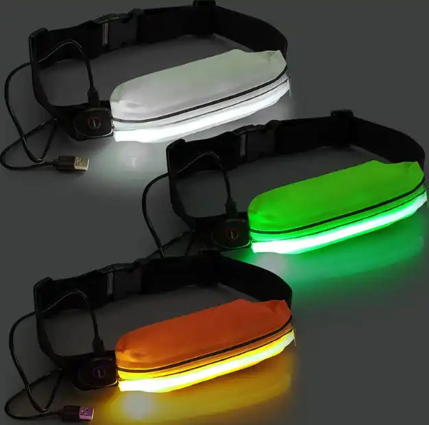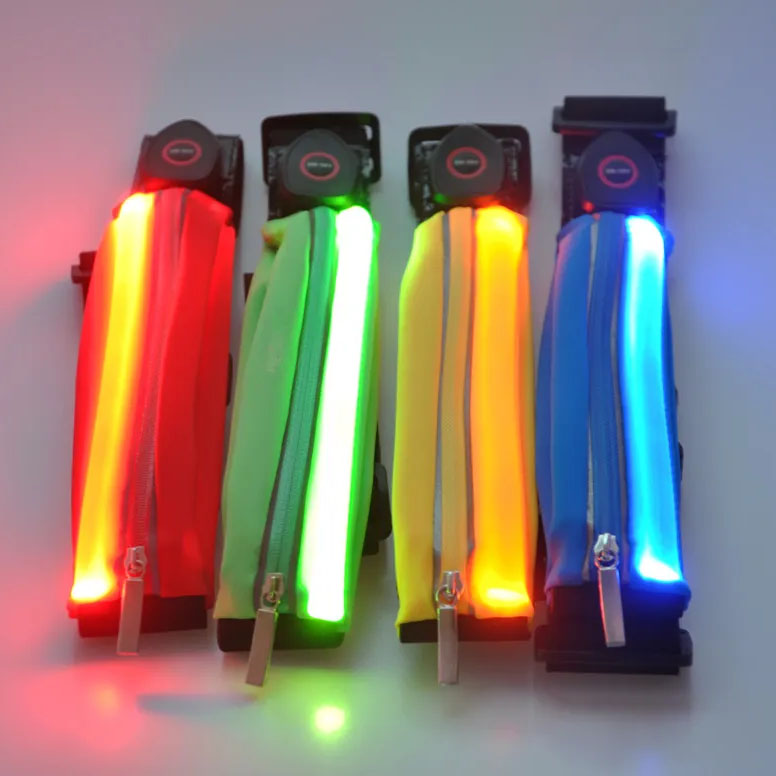Mountaineering Safety 6 Inches Phone Pocket Anti-slip Recharge Led Waist Bag Portable Fanny Pack with Reflective Stripe