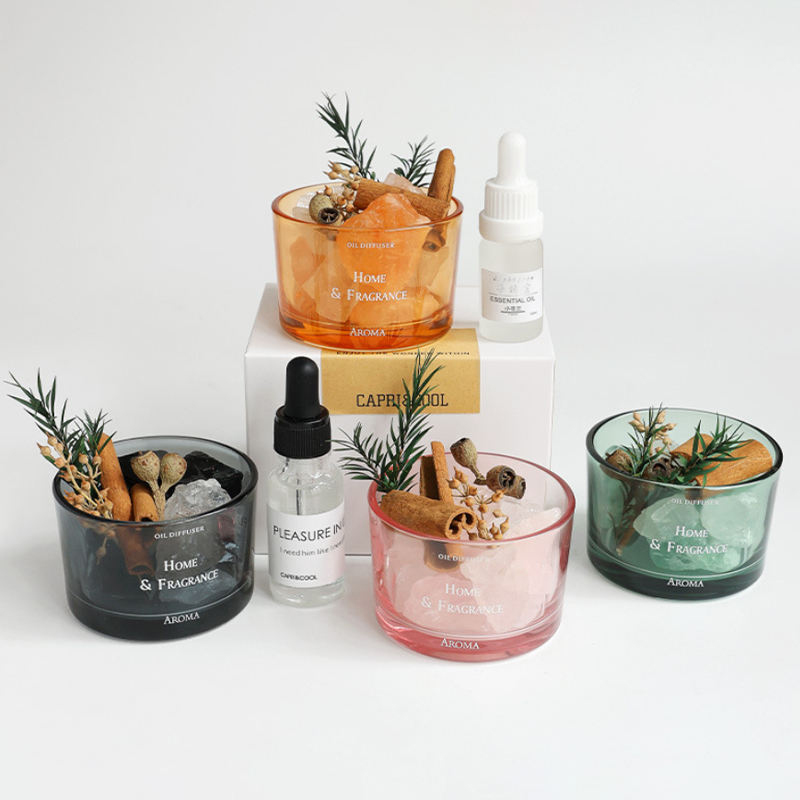 Glass Aromatherapy Diffuser Fire Expansion Stone for Bedroom Lasting Fragrance Elegant Gift Box for Wholesale