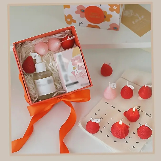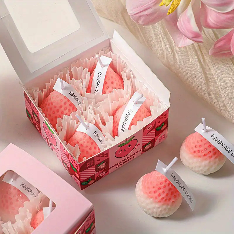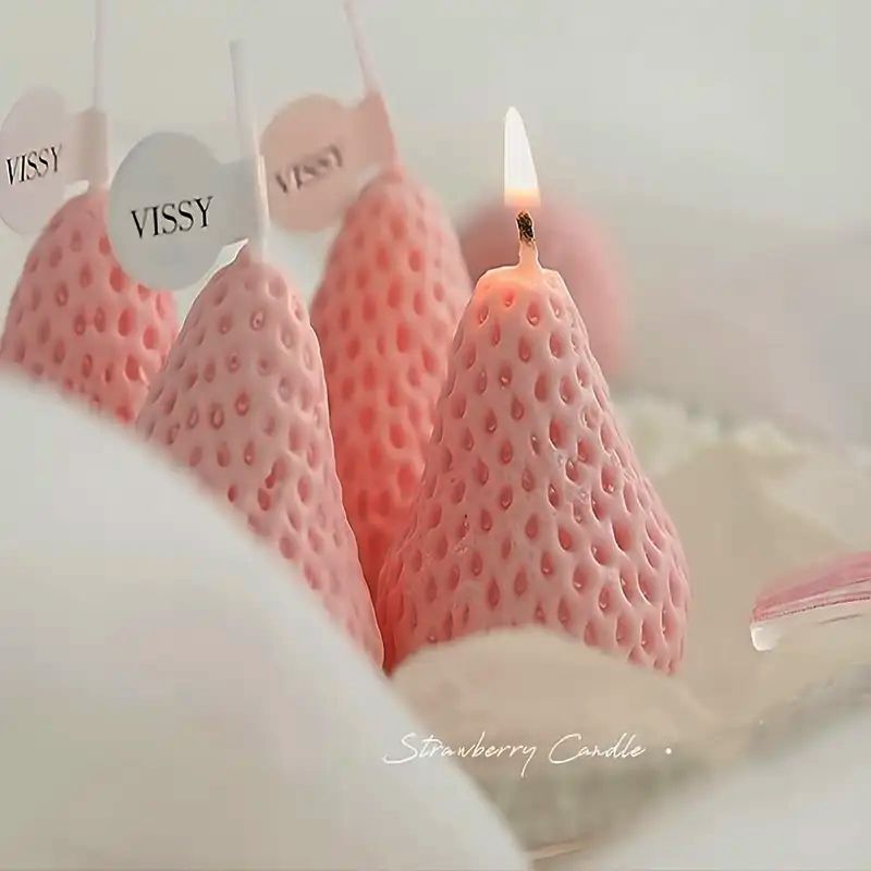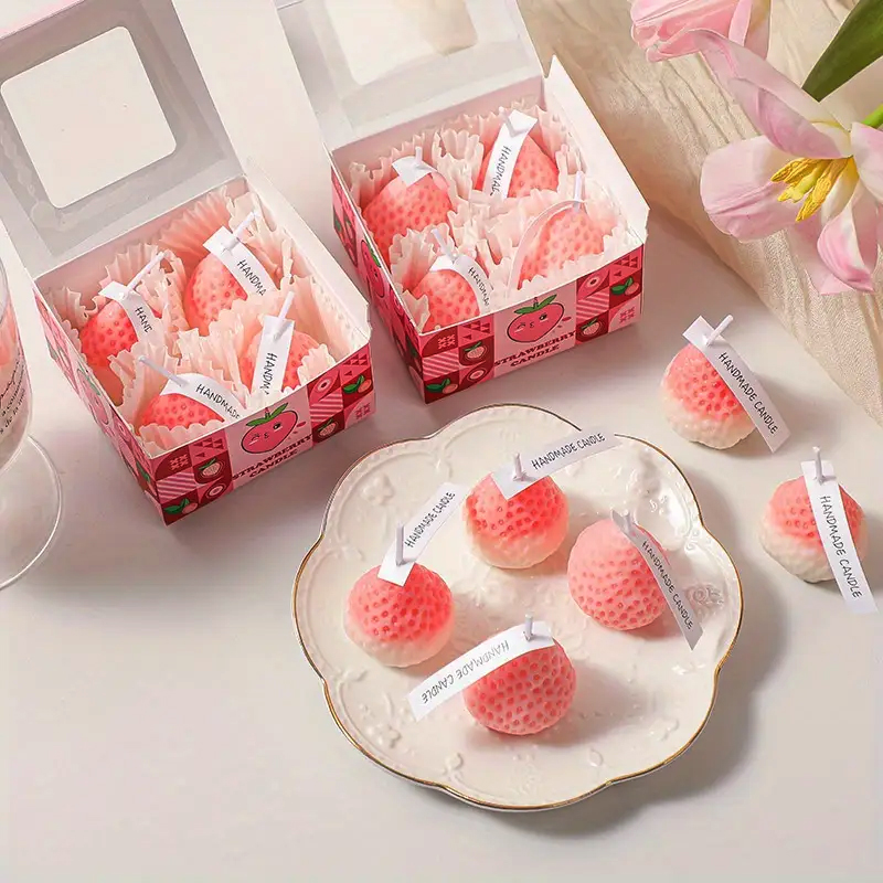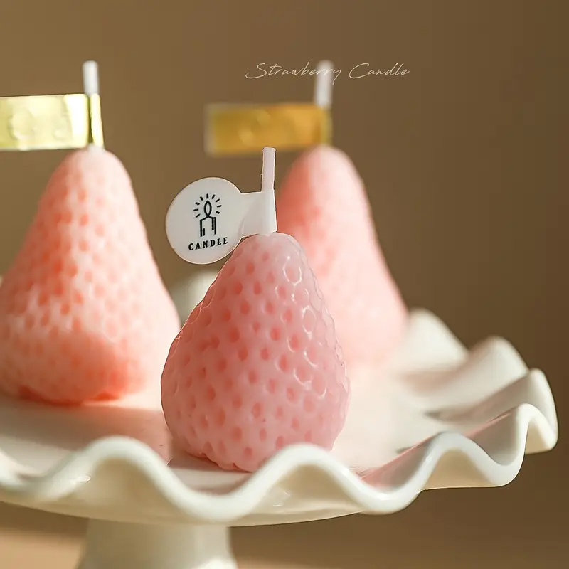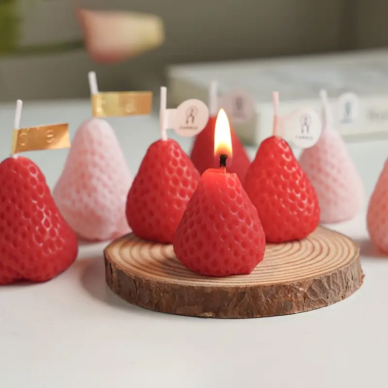 Safe Material Valentine's Day Romantic Mini Red Gradient Pink White Strawberry Shaped Soy Wax Aroma Scented Candle