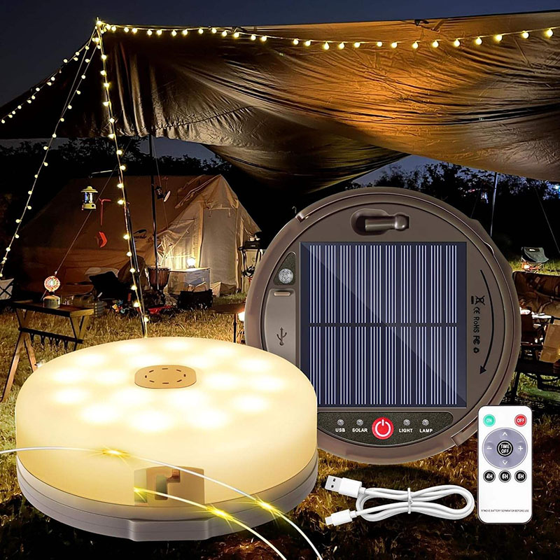 Multifunctional Portable Solar LED Camping Lantern New Outdoor Tent Light with Type-C Charging Strong String Light