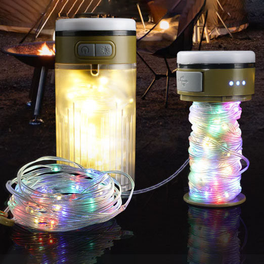 Portable Waterproof LED Camping String Light 2-in-1 Rechargeable for Hiking Courtyard Tent Decorations
