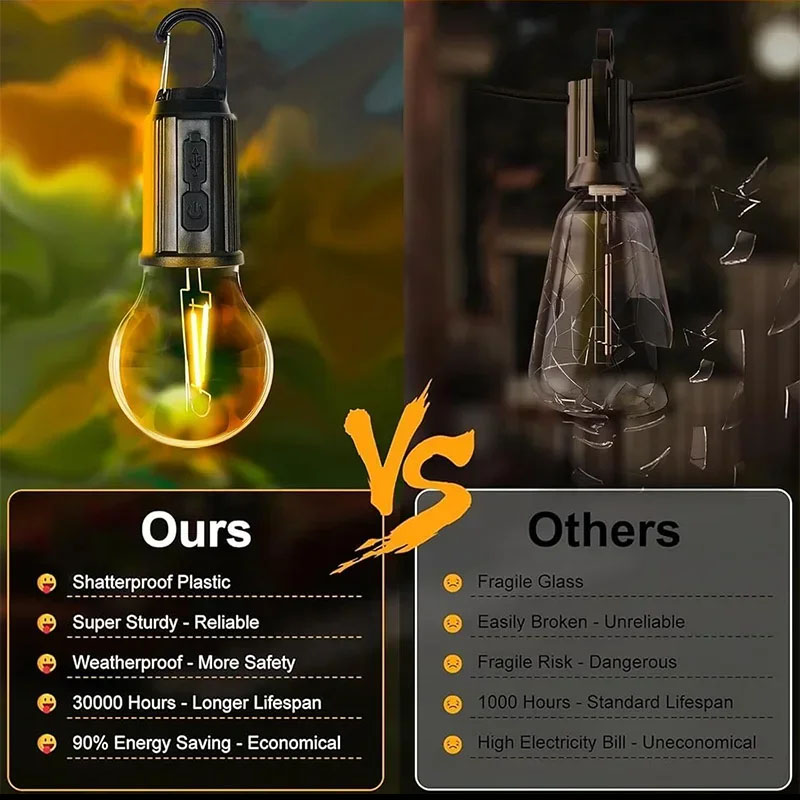 Portable Waterproof LED Camping String Light 2-in-1 Rechargeable for Hiking Courtyard Tent Decorations
