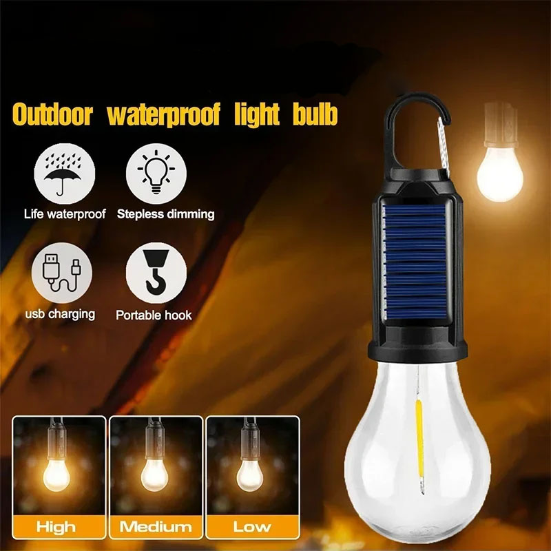Multifunctional Portable Solar LED Camping Lantern New Outdoor Tent Light with Type-C Charging Strong String Light