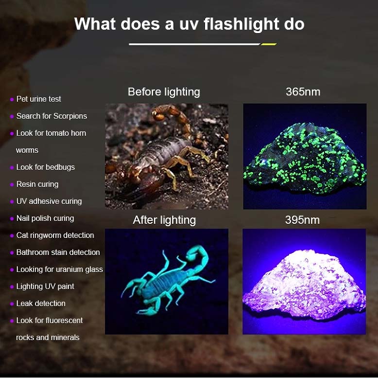 51UV LED Light 395 400nm UV Flashlight Ultraviolet Detection Torch for Cat Dog Pet Urine Money Leakage Scorpion AA Battery 3W