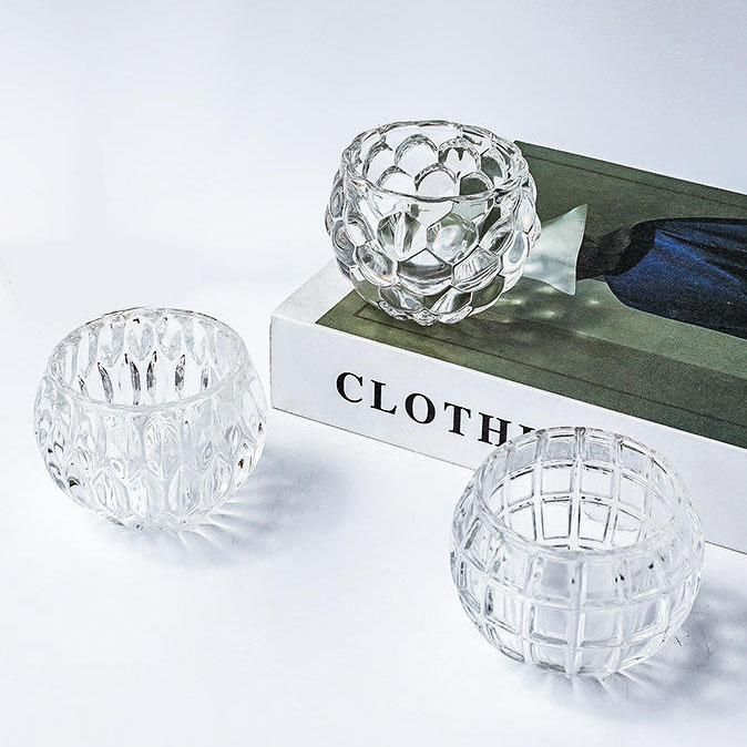 Wedding Candle Vessels Home Decoration Small Transparent clear Glass Candle Container Jars Vessels embossed candle jar