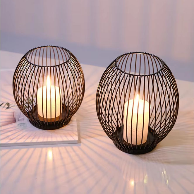 Home Living Room Decorative Retro Iron Metal Black Candle Holders Lanterns Candle Jars Ornament
