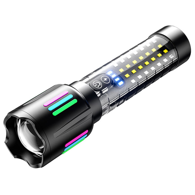 20W High Lumens Rechargeable Handheld Zoomable White Laser Flashlight with Multicolor Luminous Strip