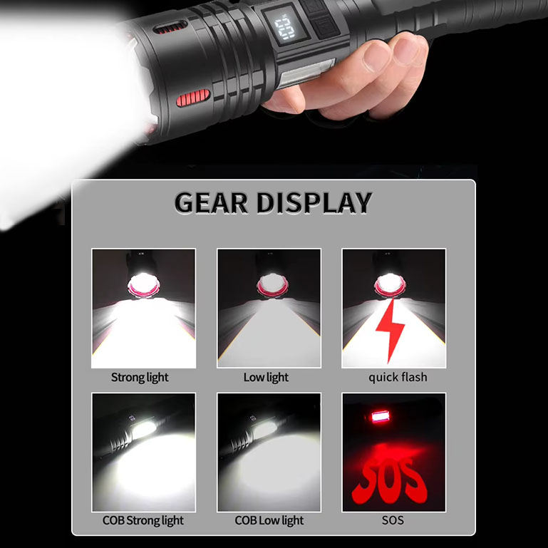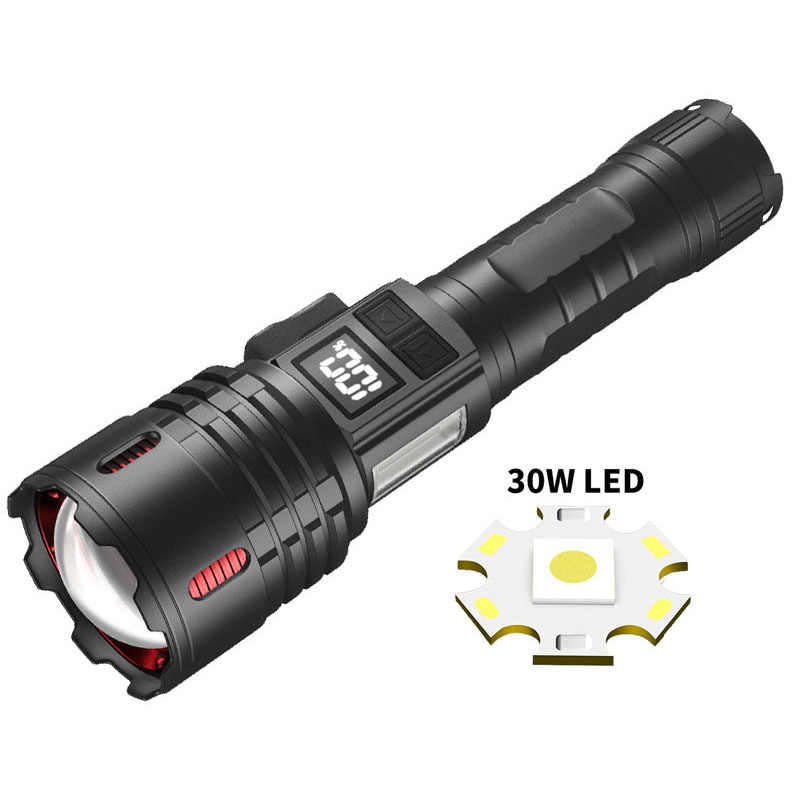 Aluminium Alloy Flashlight Fluorescent Strip Torch USB LCD Numerical Display White Laser 30W LED Outdoor Flashlight