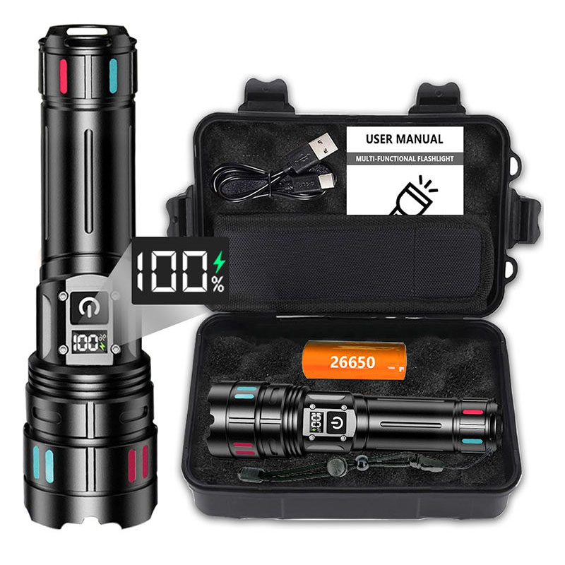 Aluminium Alloy Flashlight Fluorescent Strip Torch USB LCD Numerical Display White Laser 30W LED Outdoor Flashlight