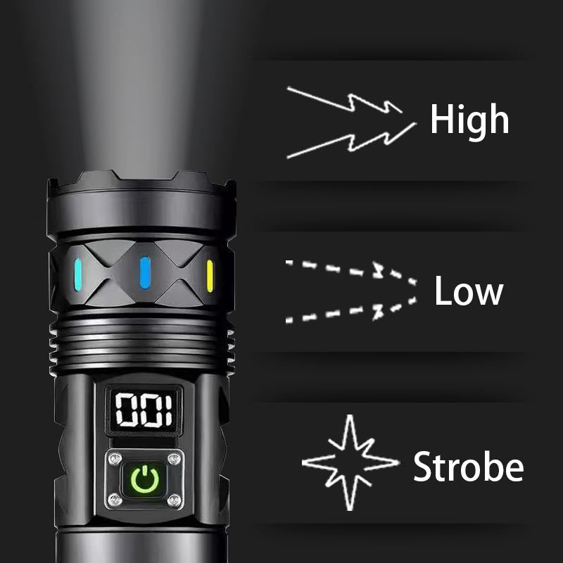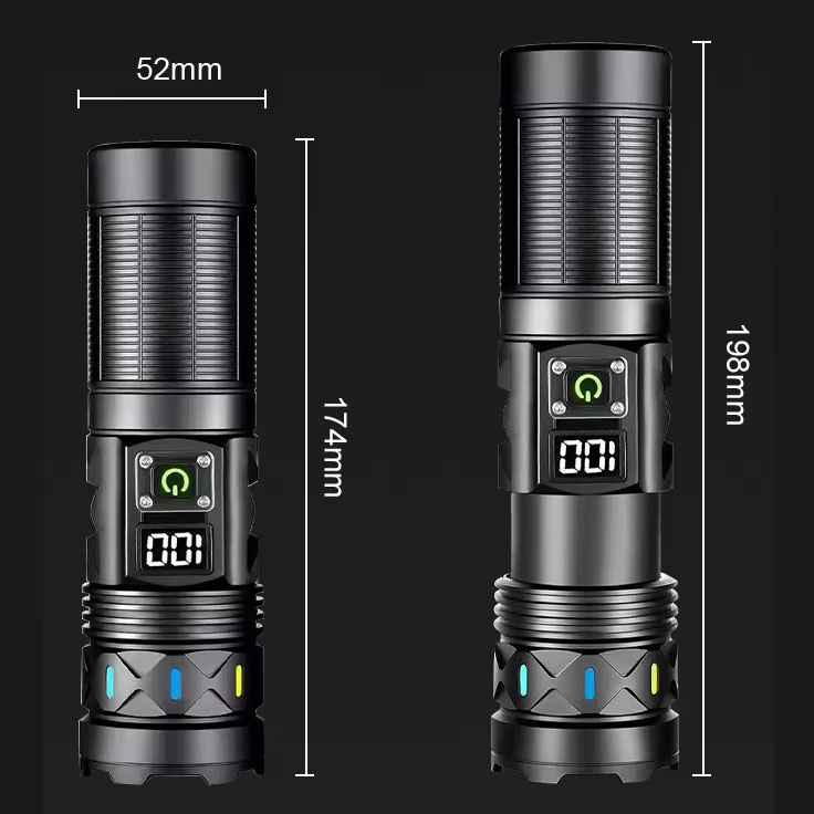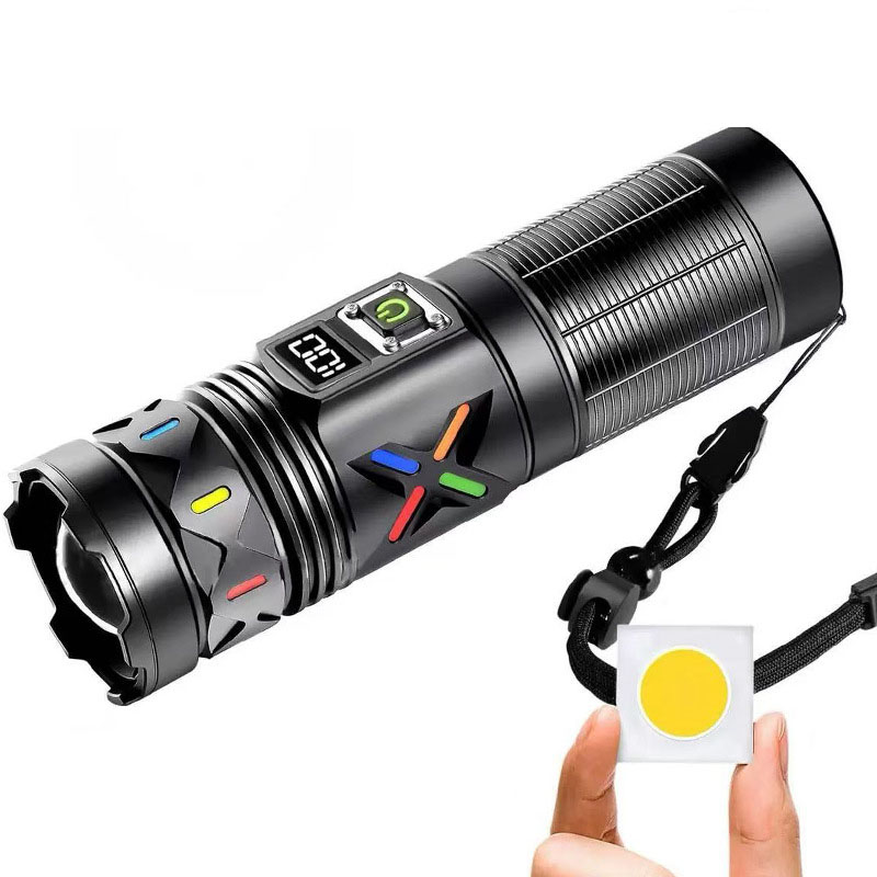 Aluminium Alloy Flashlight Fluorescent Strip Torch USB LCD Numerical Display White Laser 30W LED Outdoor Flashlight