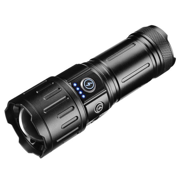Spotlight long range power bank stepless zoomable rechargeable LED outdoor tactical flashlight