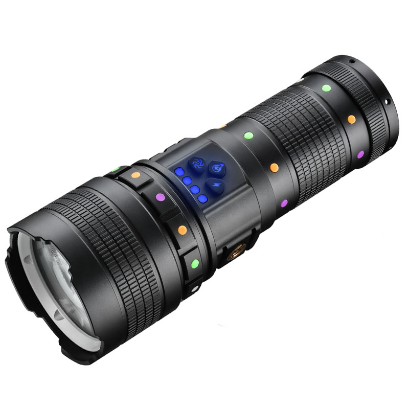 20W High Lumens Rechargeable Handheld Zoomable White Laser Flashlight with Multicolor Luminous Strip