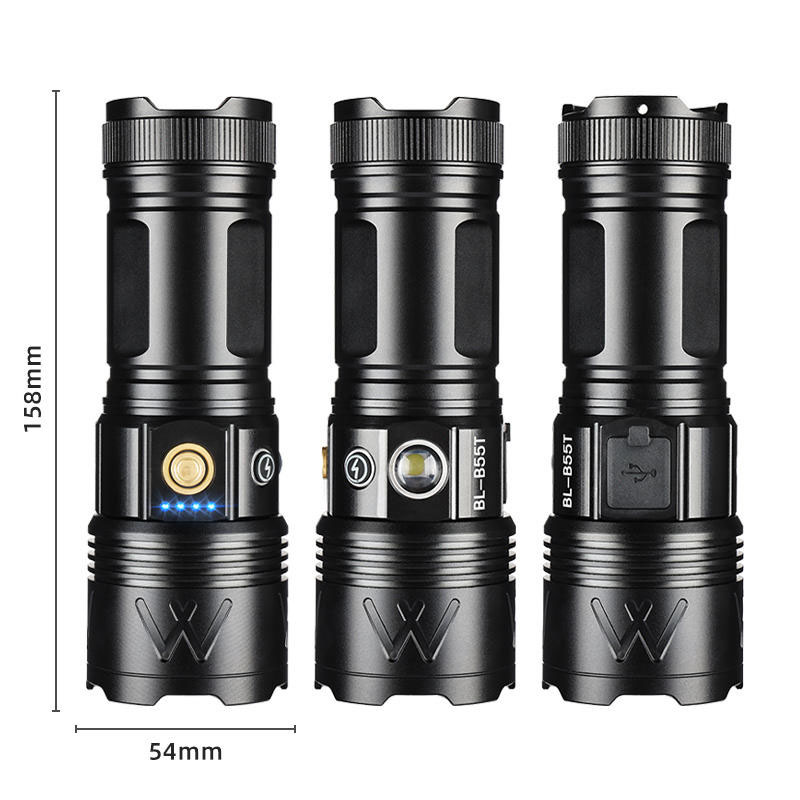 Aluminium Alloy Flashlight Fluorescent Strip Torch USB LCD Numerical Display White Laser 30W LED Outdoor Flashlight