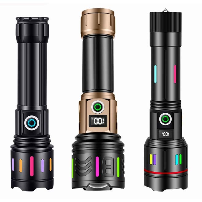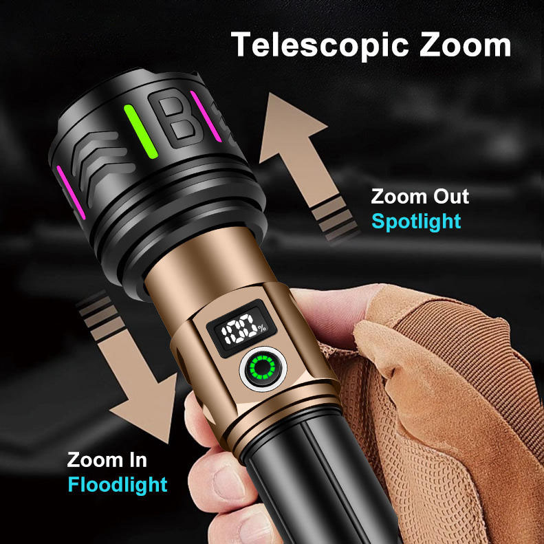 20W High Lumens Rechargeable Handheld Zoomable White Laser Flashlight with Multicolor Luminous Strip