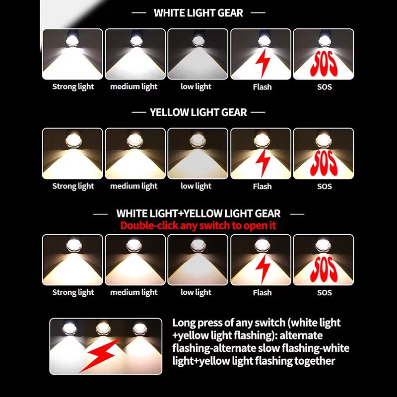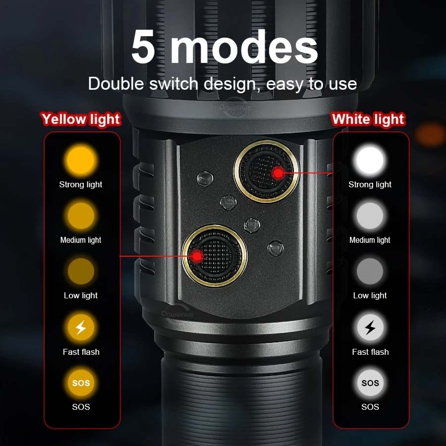 New High Power Long Distance Fluorescent Film Power Indicator Rechargeable LED Tactical Flashlights