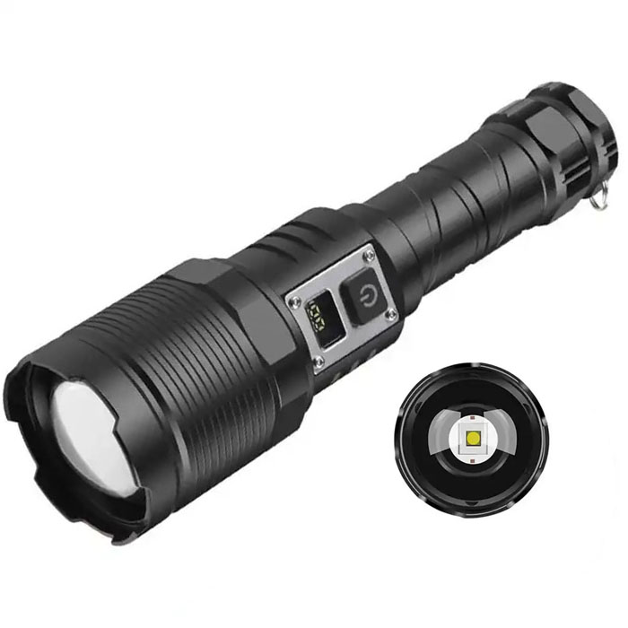 20W White Yellow Blue Zoomable 1000lumen 18650/26650 Our Put Torch Fluorescent Digital Display Flashlight