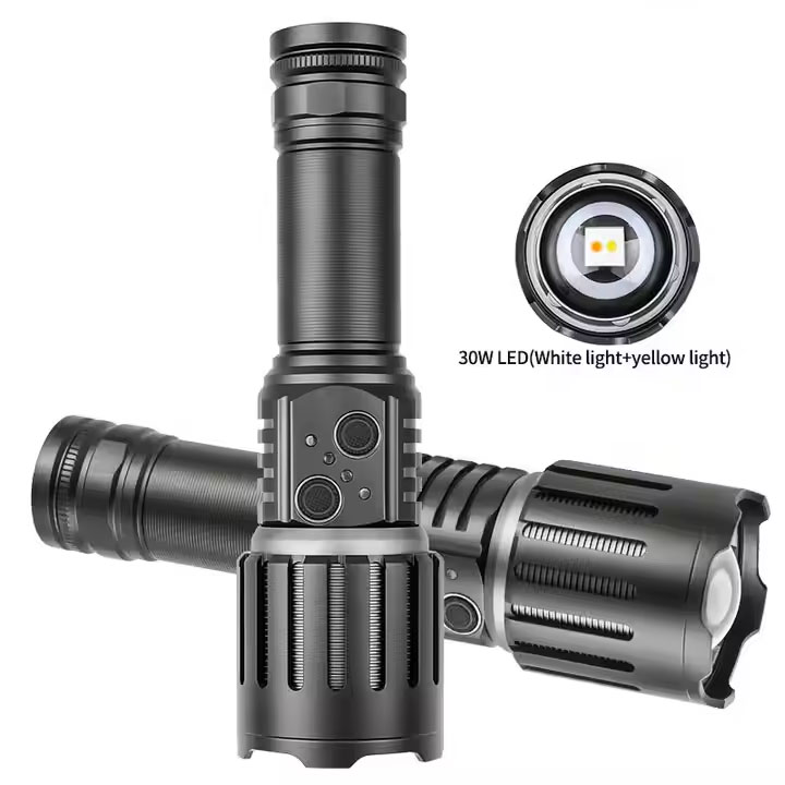 Power LED Flashlight with White Yellow Light Aluminum Alloy Body USB Charging IP55 Rating