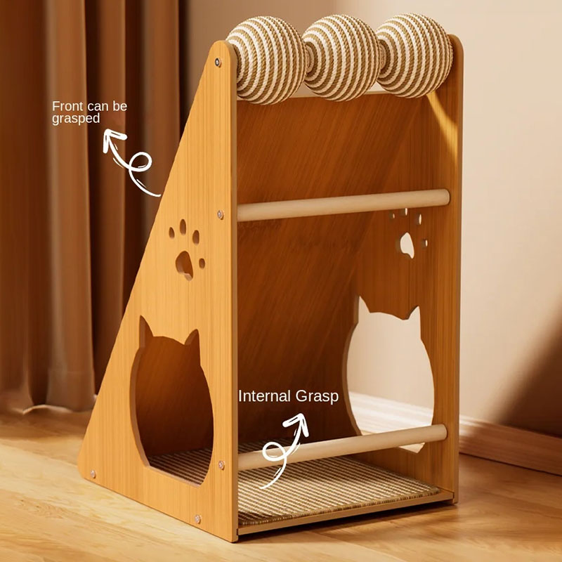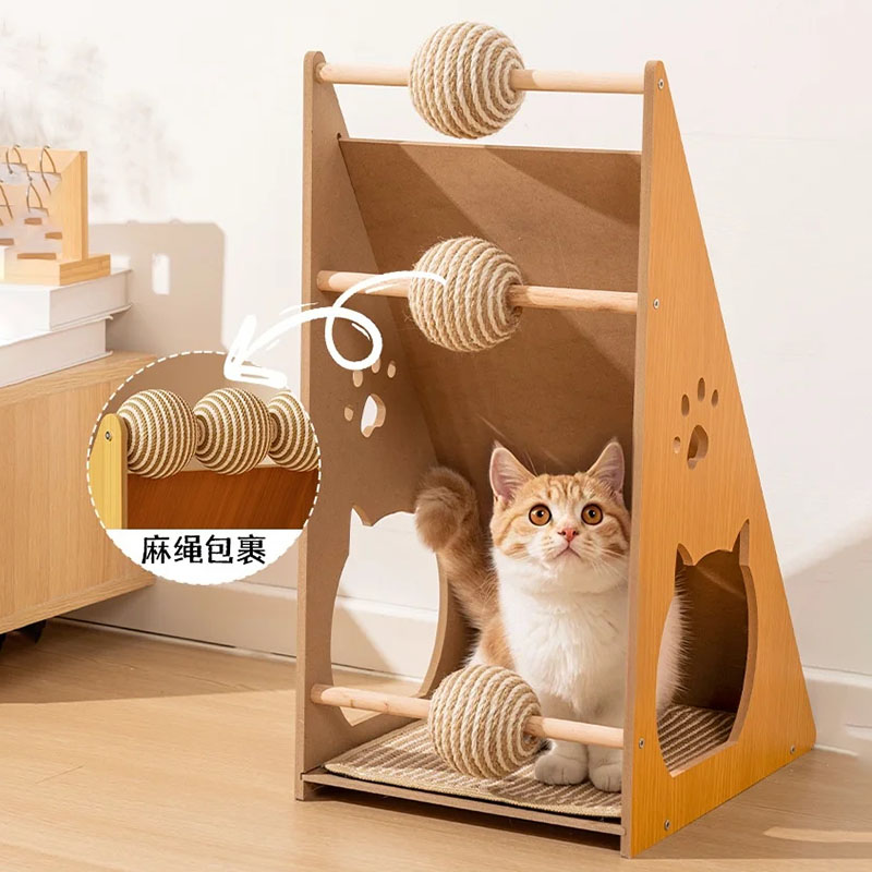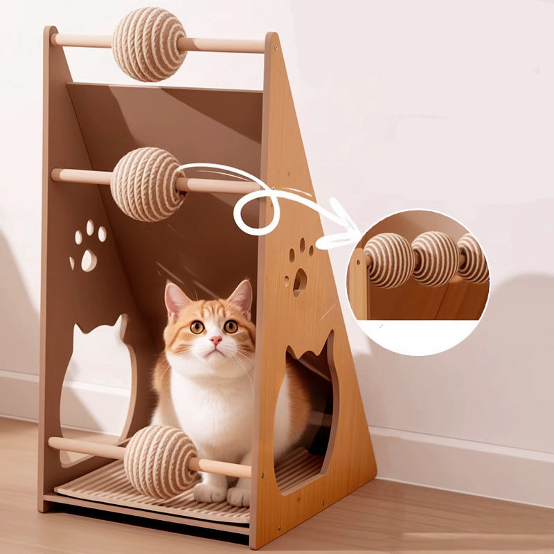 Solid Wood Cat Tree Water & Scratch Resistance Cat Climbing Frame with Sisal Material Cat Tree Tower Scratcher House