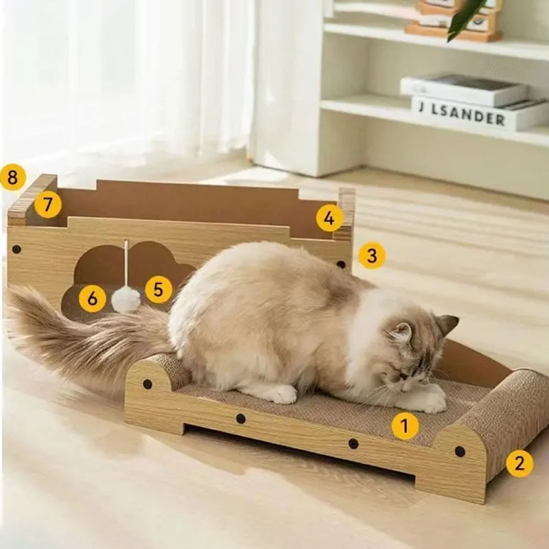 Cardboard Cat Scratcher Bed Lounge Cat Scratching Sleeping Playing Furniture Toy with Ball
