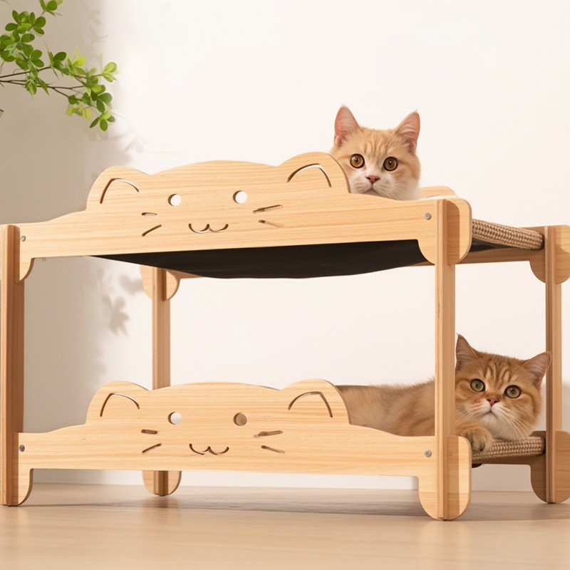 Solid Wood Cat Tree Water & Scratch Resistance Cat Climbing Frame with Sisal Material Cat Tree Tower Scratcher House