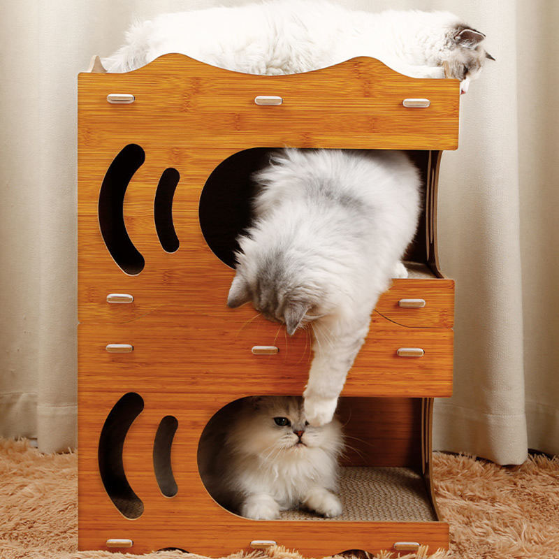 Large Cat Tree Colorful Super Towers Natural Wooden Pet Scratcher Sustainable Classic Cute Cat Bed Wood Post Sisal
