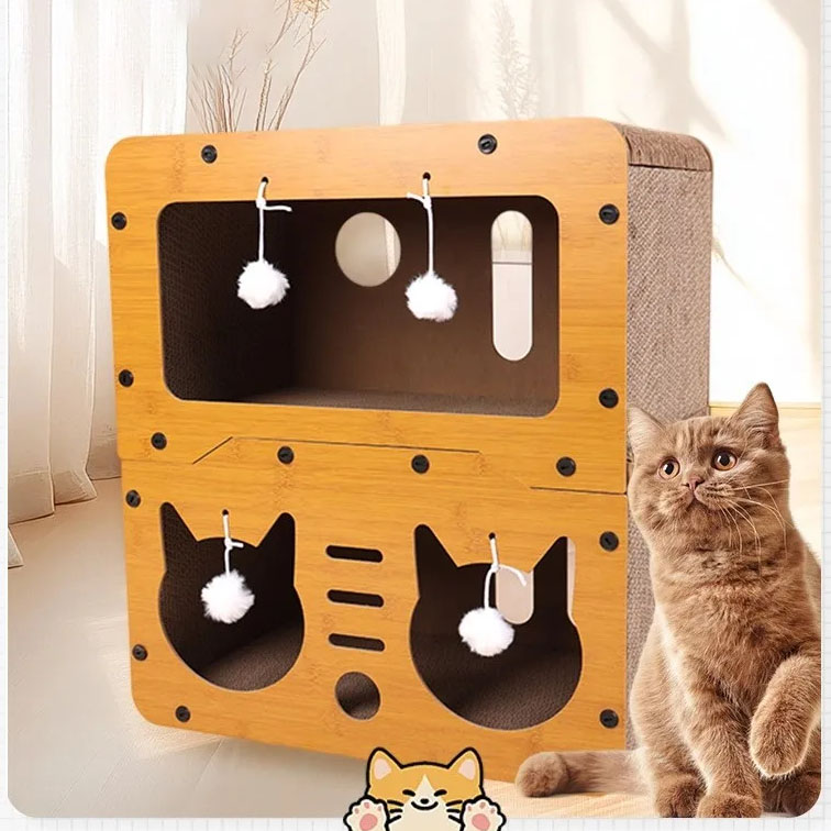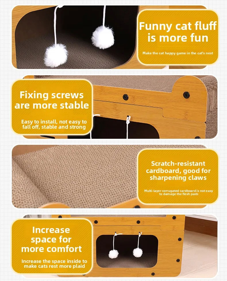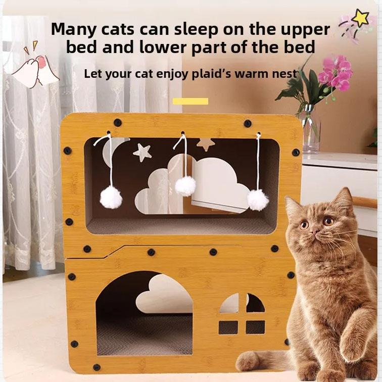 Cardboard Cat Scratcher Bed Lounge Cat Scratching Sleeping Playing Furniture Toy with Ball