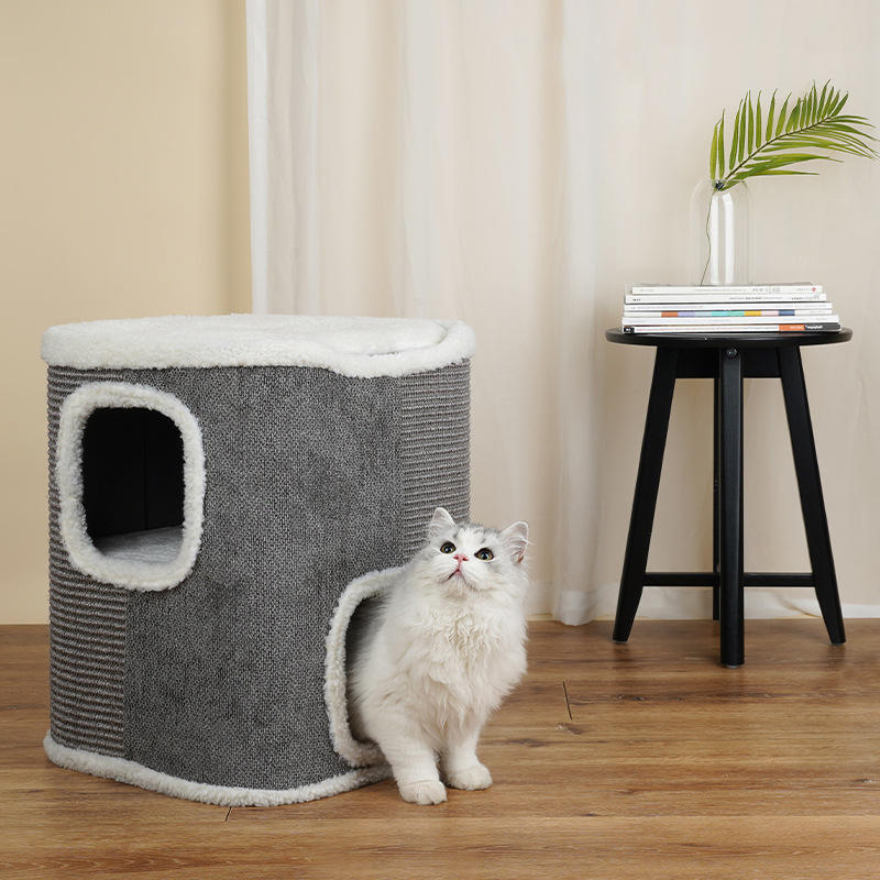 Solid Wood Cat Tree Water & Scratch Resistance Cat Climbing Frame with Sisal Material Cat Tree Tower Scratcher House