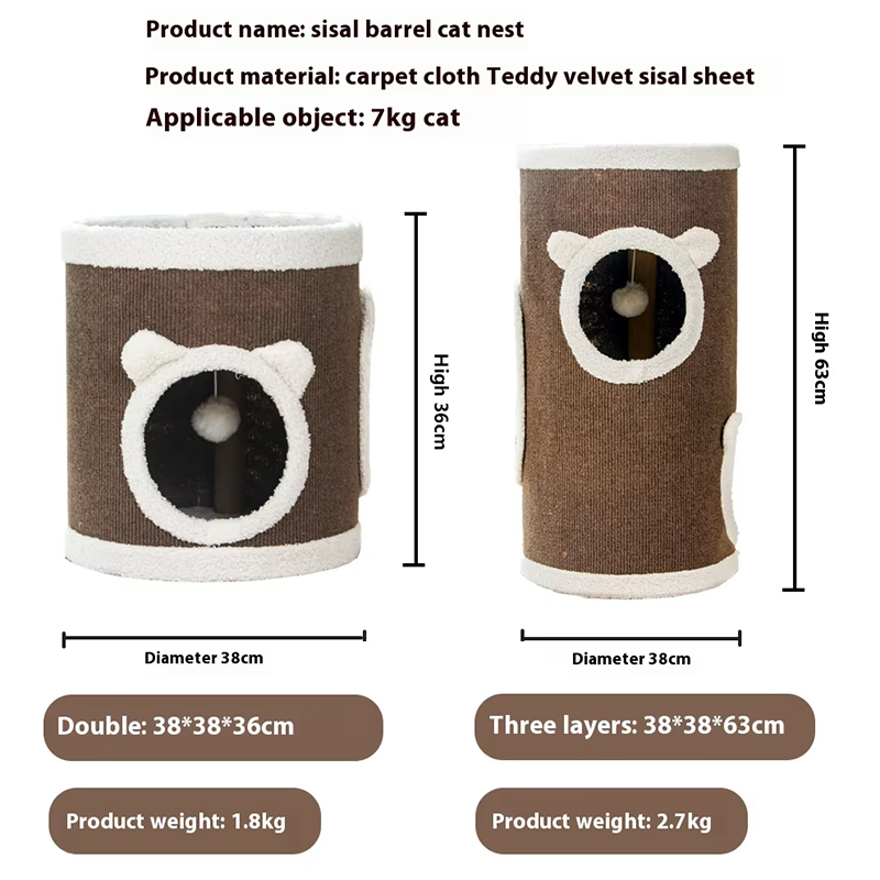 Multi-Layer Sisal Barrel Climbing Rack Household Cat Tree Scratcher Small Apartment Non-Ocupying Cat Nest Carton