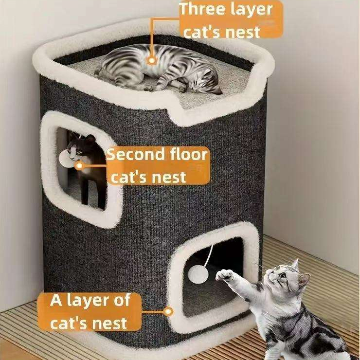 Multi-Layer Sisal Barrel Climbing Rack Household Cat Tree Scratcher Small Apartment Non-Ocupying Cat Nest Carton