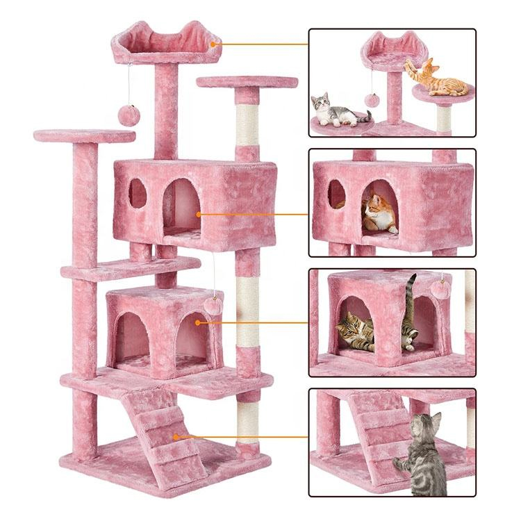 Large Cat Tree Colorful Super Towers Natural Wooden Pet Scratcher Sustainable Classic Cute Cat Bed Wood Post Sisal