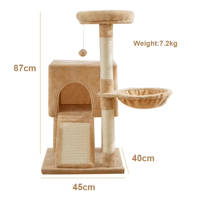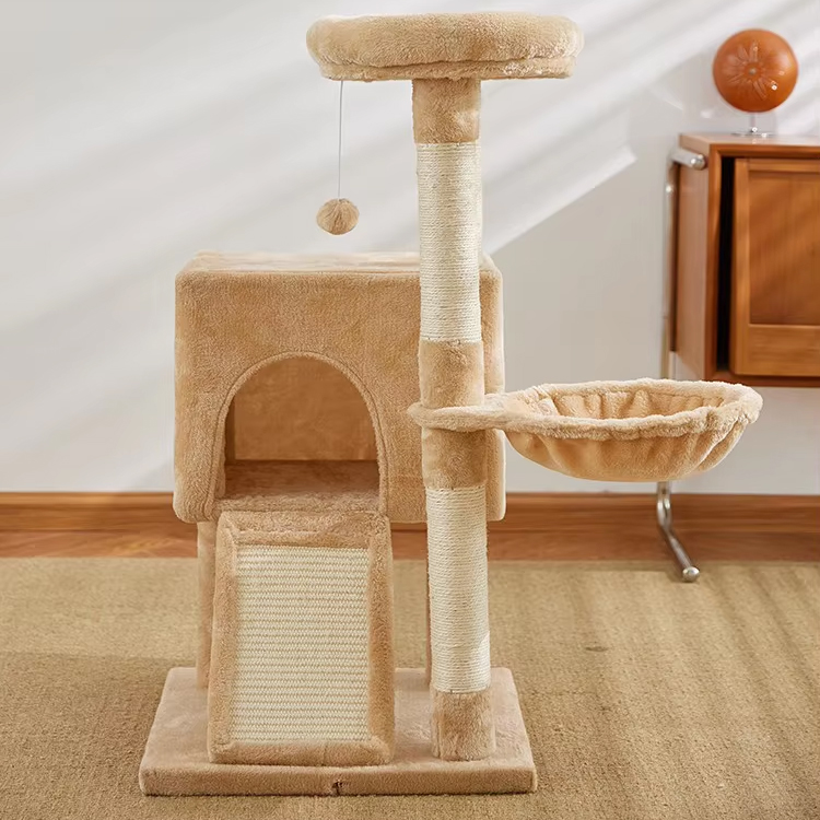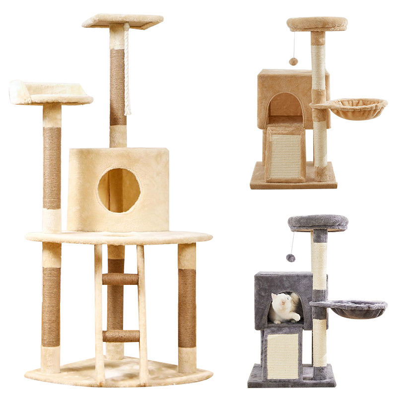 Solid Wood Cat Tree Water & Scratch Resistance Cat Climbing Frame with Sisal Material Cat Tree Tower Scratcher House