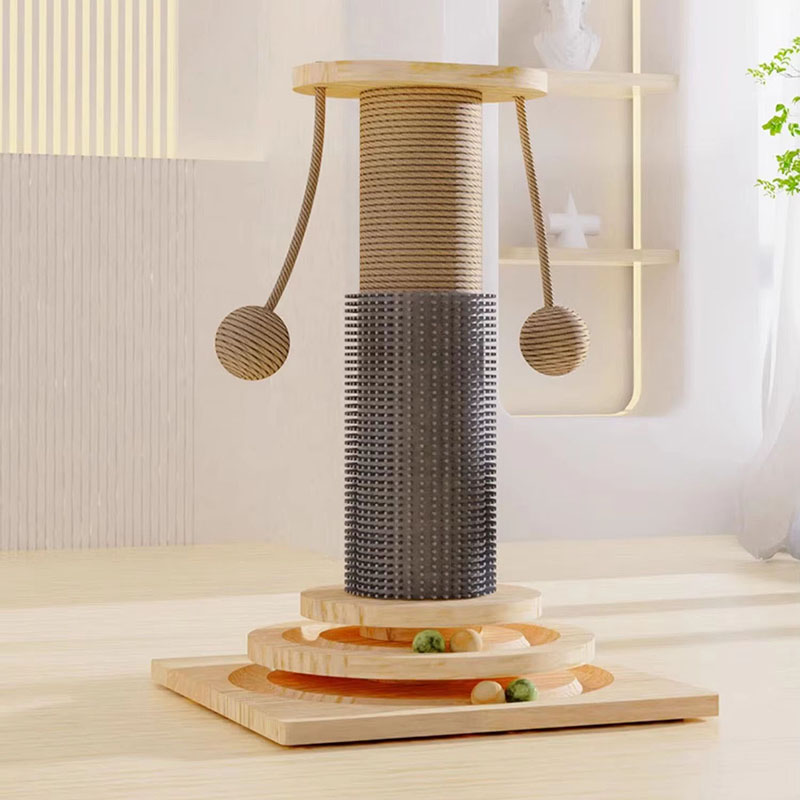 Modern Eco-Friendly Wood Cat Toy Funny Turntable Pillar Leakage Ball Factory Direct Supply Cross-Border Explosions Pet Supplies