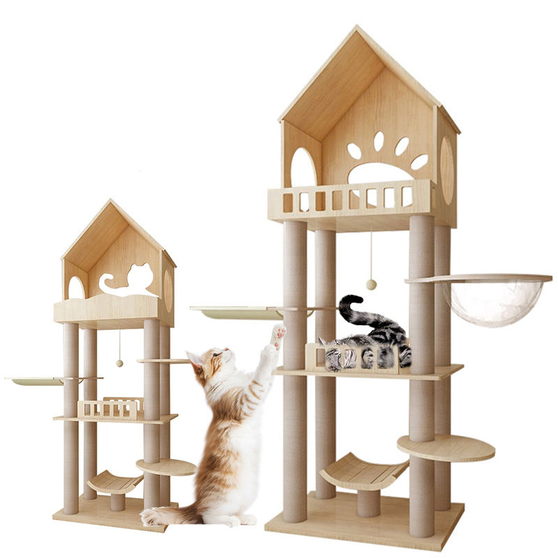 Wooden Cat Climbing Frame Wooden Cat Tree with Sisal Rope Cat Scratching Board Tree