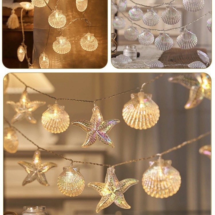 Starfish & Seashell LED String Lights, Summer Beach Ambience Fairy Lights, For Home, Bedroom, Party, Festival, Wedding, Outdoor Decor, Gift Idea