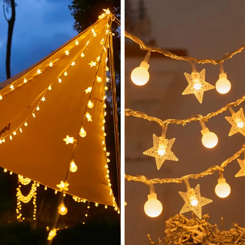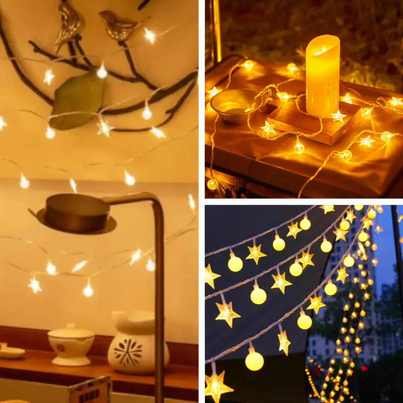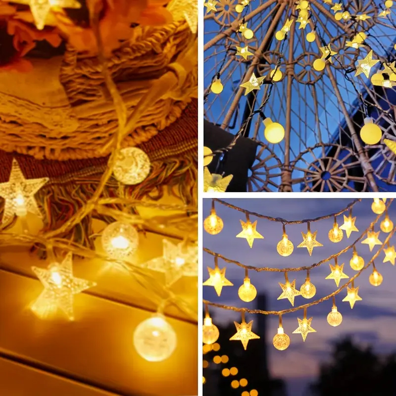 Warm White Star & Crescent Moon String Lights ,Fairy Lights for Bedroom Wall Decor, Tent Decor, Wedding Decor, Birthday Party Decor, home decor,Ramadan decorative star light string