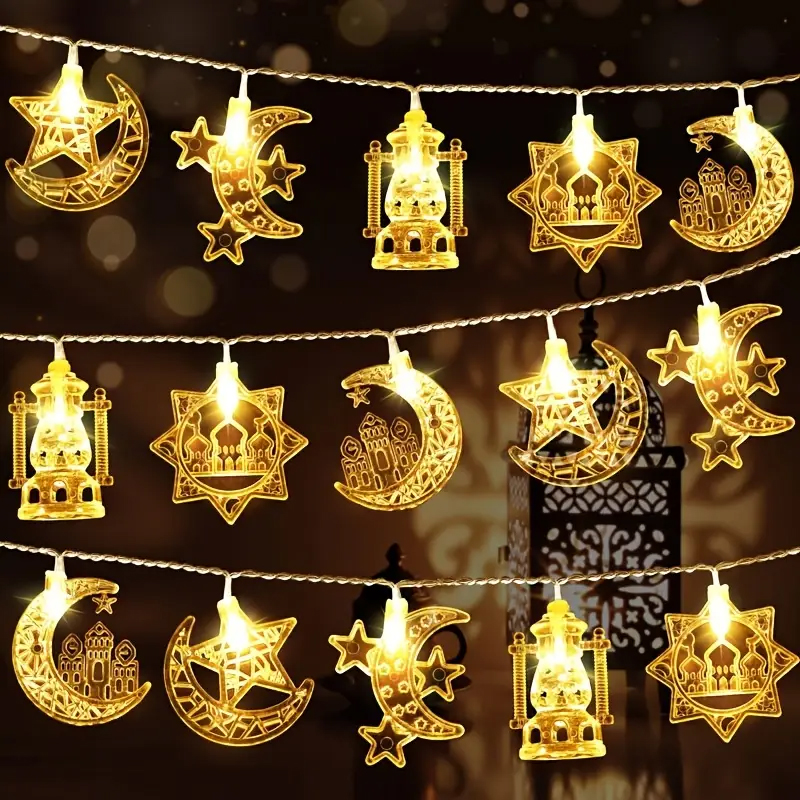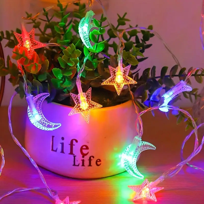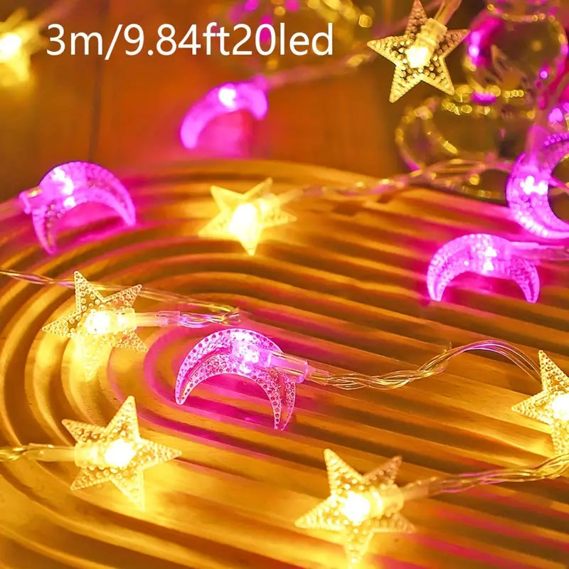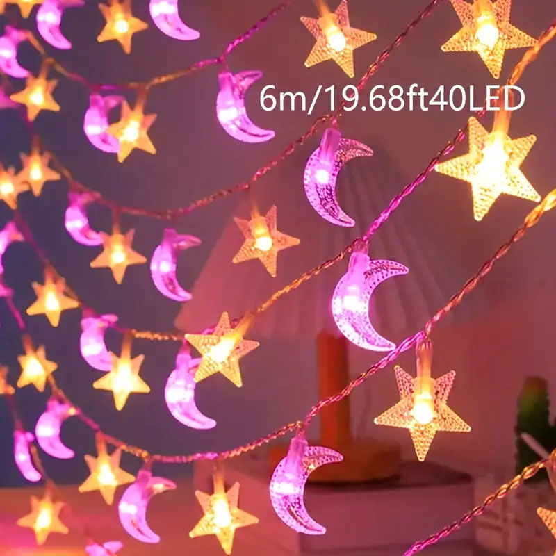 Warm White Star & Crescent Moon String Lights ,Fairy Lights for Bedroom Wall Decor, Tent Decor, Wedding Decor, Birthday Party Decor, home decor,Ramadan decorative star light string