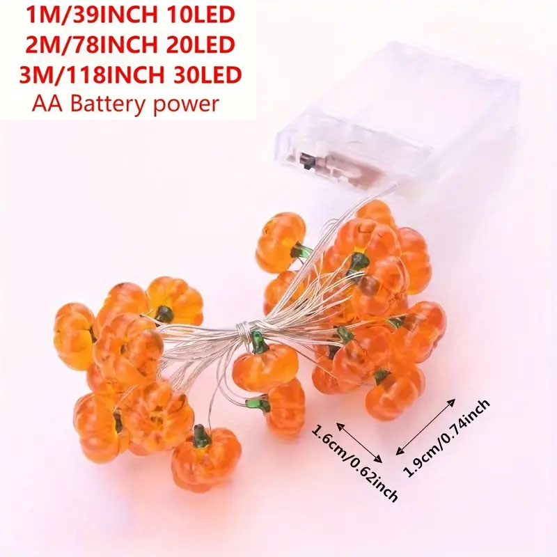Pumpkin Shaped LED Fairy String Lights, Battery-Powered Copper Wire Decorative Lighting for Festive Celebration, Indoor Decoration