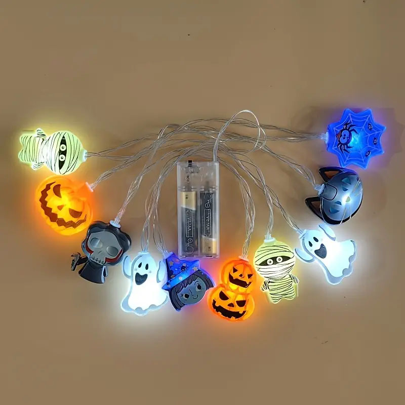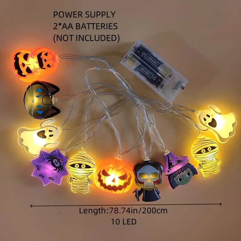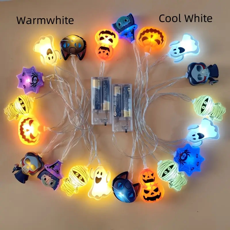 Halloween LED Fairy Lights Spooky Pumpkin, Witch, Mummy, & Cat Designs for Party Decor, Halloween Decorations