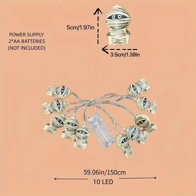 LED Mummy String Lights for Halloween Battery Operated, Perfect for Indoor Decor, Parties & Fall Celebrations