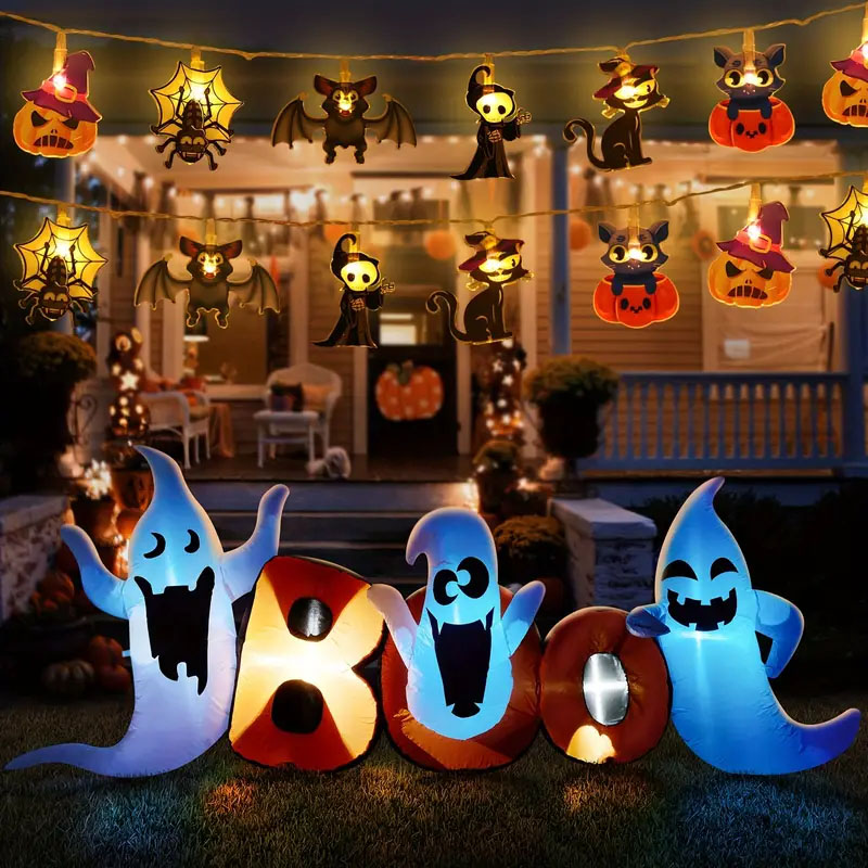 Halloween LED Fairy Lights Spooky Pumpkin, Witch, Mummy, & Cat Designs for Party Decor, Halloween Decorations
