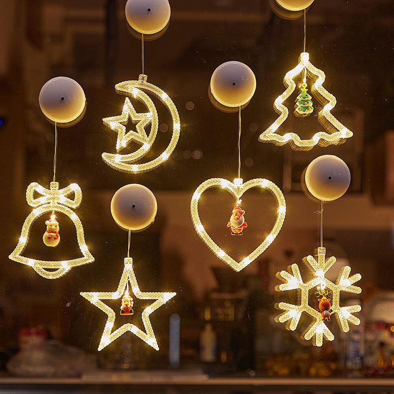 New Christmas Suction Cup Lights Leather Cord Decorative Scene Display for Holiday Window Indoor-Outdoor Use