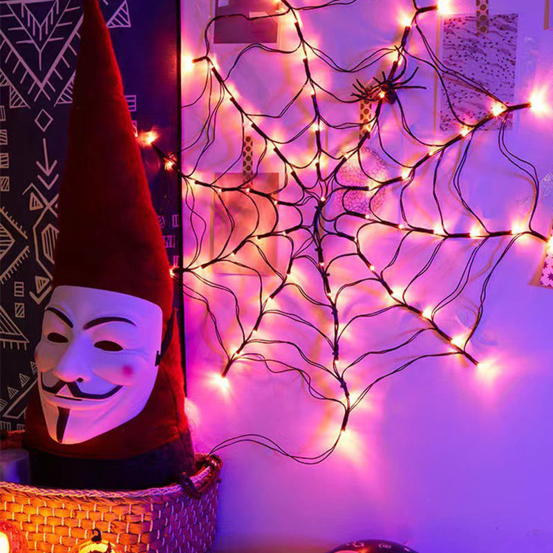 Remote Control LED Spider Web String Lights for Halloween New Year's & Ghost Festival Wall Decorative Cross-Border New Design